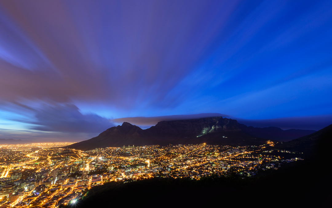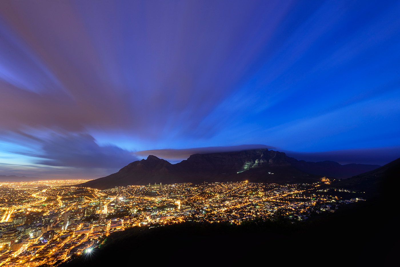 Table Mountain, beautiful photo, night, twilight, colourful, dramatic